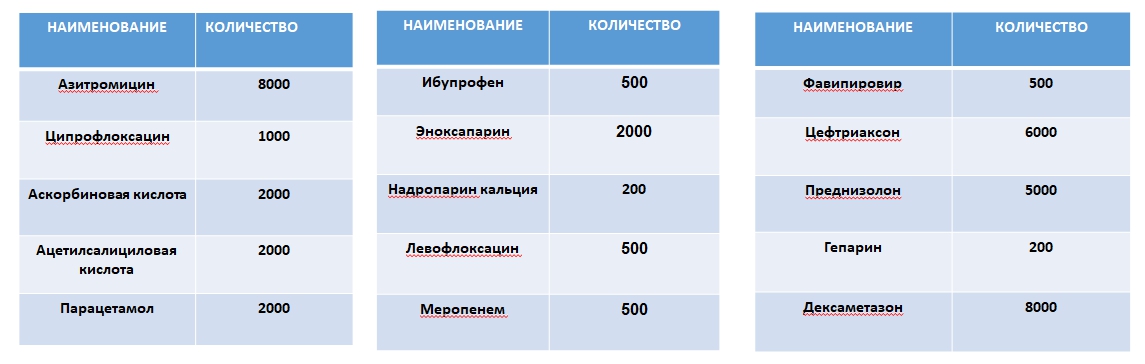 В рамках гарантированного объема бесплатной медицинской помощи в ГКП на ПХВ «Детская городская клиническая инфекционная больница» УОЗ г.Алматы на 03 августа 2020 года* имеются следующие лекарственные препараты для лечения COVID-19.